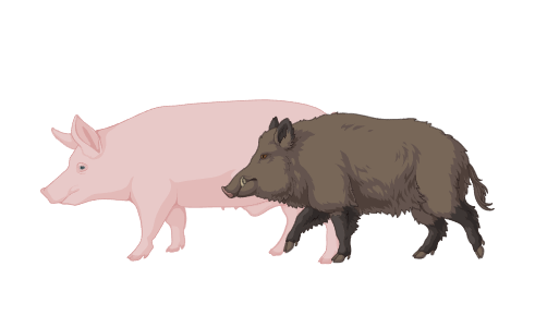 | Svinepest, klassisk og afrikansk | Virus. Viruset er svært motstandsdyktig, og dyr som overlever, bærer smitten resten av livet. I nedfryst kjøtt og blod kan viruset fortsatt være smittefarlig etter flere år! | Dyr i svinefamilien. ![]() | Dyra får høy feber, og det er ei sterk påkjenning. | De fleste dyra dør. |