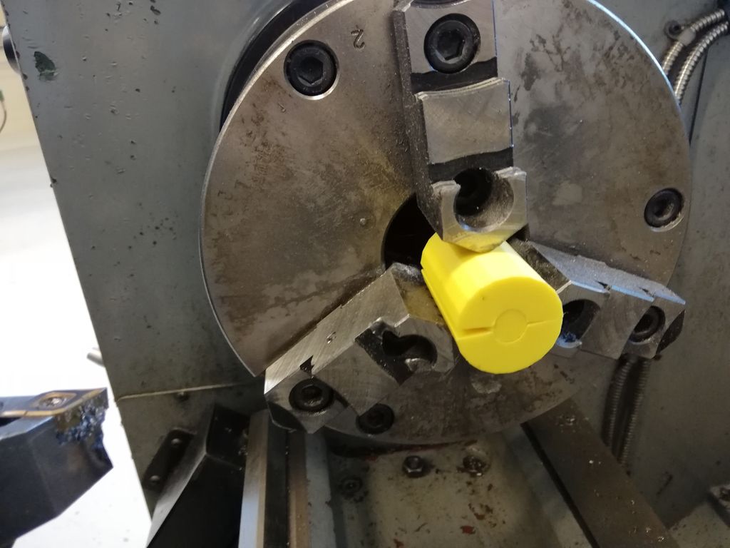 Du spenner opp arbeidsemnet i en kjoks. Den har klembakker som presser mot arbeidsemnet og holder det på plass. Bakkene justerer du med en kjoksnøkkel.